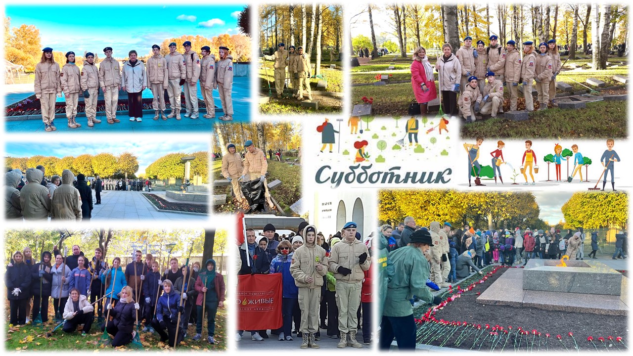 21 октября 2023 года школьный отряд юнармейцев и учащиеся 8-10 классов приняли участие в Общегородском субботнике на Пискаревском мемориальном кладбище. Участники субботника возложили гвоздики у вечного огня, минутой молчания почтили память погибших ленинградцев и защитников блокадного Ленинграда. Ребята помогли убрать братские могилы и прилегающую к мемориалу территорию от опавшей листвы.
